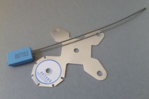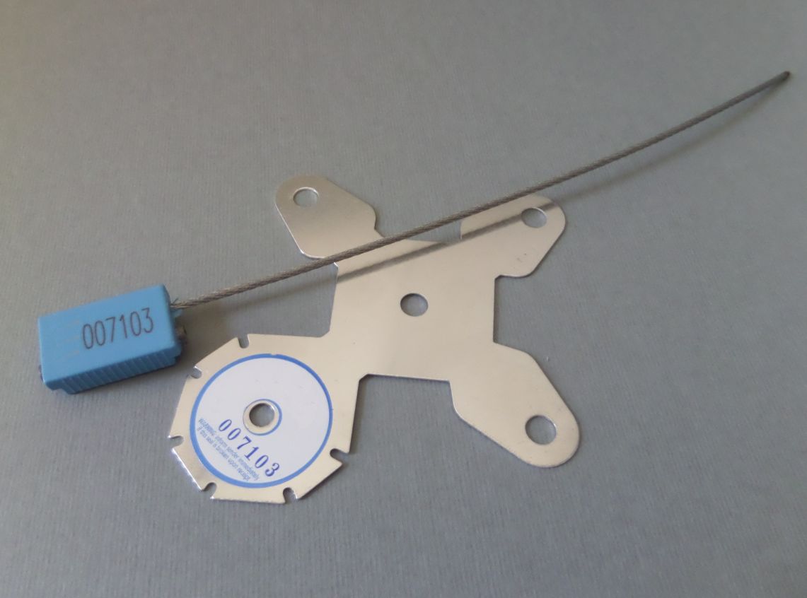 - The seal combines a light-weight cable seal with an aluminium cross plate, both printed with the same serial number.